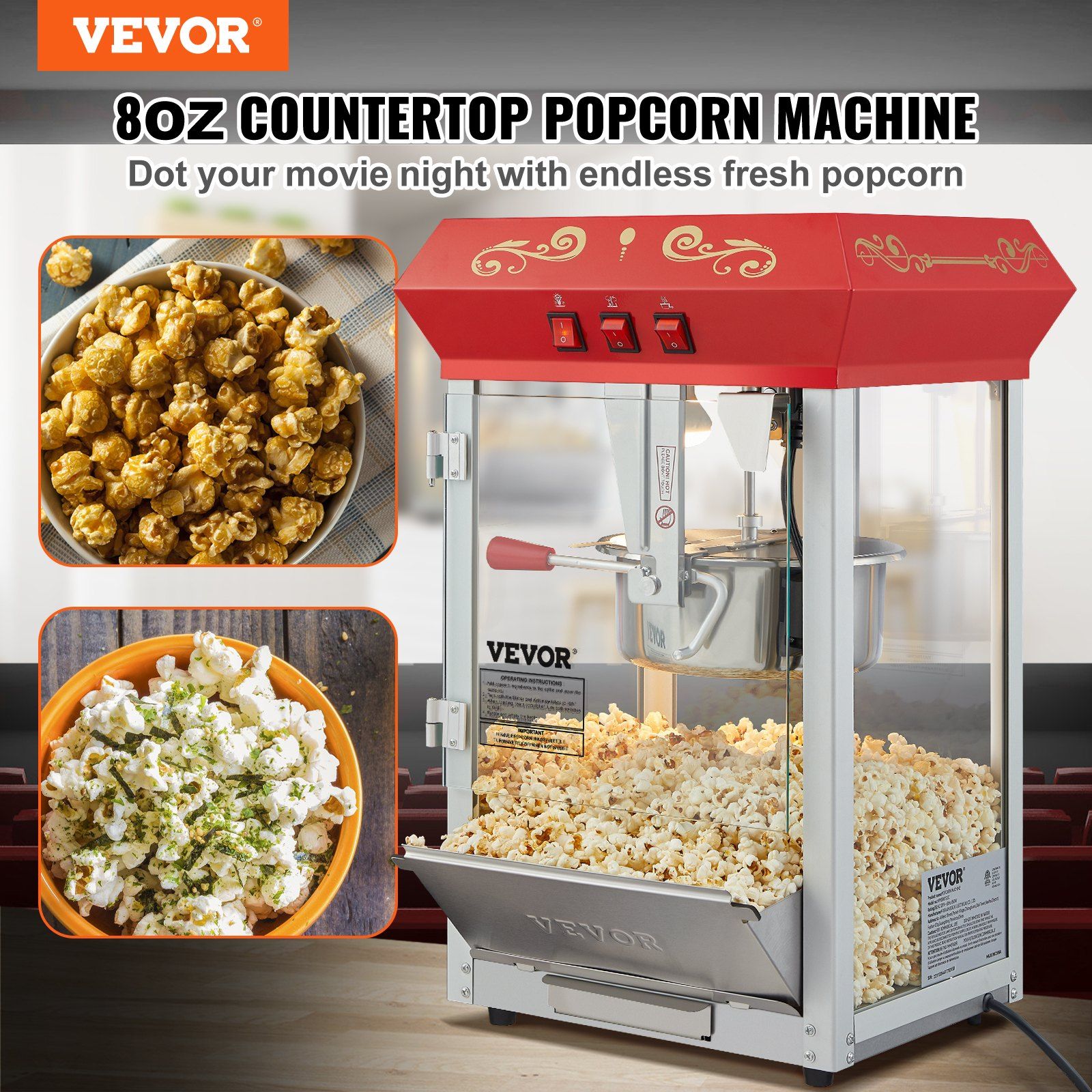 Home > VEVOR Popcorn Popper Machine 8 Oz Countertop Popcorn Maker 850W 48 Cups Red