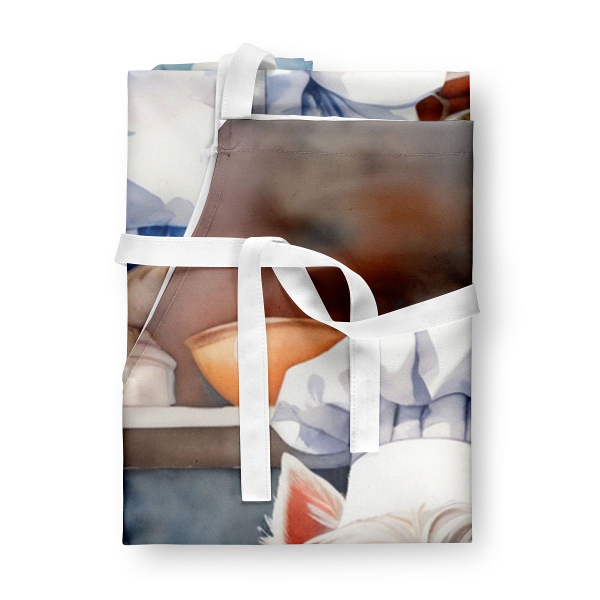 Apron featuring breed specific West Highland White Terrier artwork. Elevate your cooking, baking, and grilling experiences with our versatile Kitchen or BBQ Apron. This Bib Style apron isn't just limited to culinary activities - it also serves as an excellent baking apron, artist apron, server apron, gardening apron, or even a dog grooming apron. The apron showcases vibrant full-color artwork contributed by one of our talented artists, bringing a dash of style to your daily tasks. With dimensions of approximately 27"W x 30"H, it provides ample coverage to protect your clothing from spills and splashes. Our apron is meticulously crafted from 100% Ultra Spun Polyester, known for its durability and lightweight nature. The apron comes with white tie straps, ensuring a comfortable and adjustable fit for all. It's a perfect choice for kitchen apron enthusiasts, whether you are a woman or a man. Designed for easy maintenance, this apron is fully machine washable. The quick-drying polyester material actively reduces staining, keeping your apron looking fresh and new for longer. Our beautifully designed apron isn't just a functional kitchen accessory - it's a fashion statement in the culinary world!